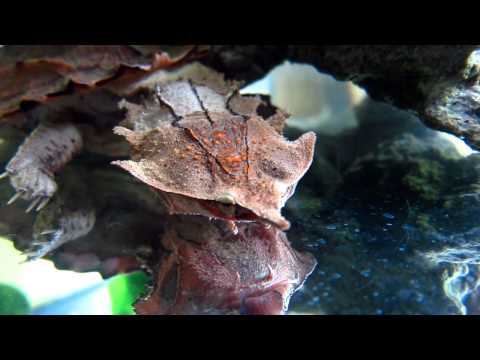 | La tortuga Matamata es eminentemente acuática y se la reconoce por sus extremidades de múltiples prominencias en forma de puntas. Es frecuente encontrarla en zoológicos y hábitats artificiales, debido a su rápida adaptación al cautiverio. Pese a que transcurre la mayor parte de su vida en el agua, La Chelus Fimbriatus no es demasiado hábil para desenvolverse, antes bien, elige quedarse en zonas de poca profundidad de modo de respirar según su método de elevar la cabeza por sobre la superficie. Quienes crían esta especie, preparan piletones midiendo la cantidad de líquido de acuerdo al largo del cuello del animal. Una Matamata puede pesar hasta 14 kg. y medir 50 cm de largo. Los machos de la especie son un poco más pequeños que las hembras, las cuales depositan sus huevos en la tierra, acontecimiento que marca para ellas la única salida del medio líquido. Los ríos Amazonas y Orinoco son los que originariamente constituyen el hogar de las Matamata. El agua dulce y el clima pantanoso y subtropical favorecen a esta especie a la hora de gestionar el alimento para subsistir. Si se la somete a cautiverio, debe procurarse enriquecer el agua con los minerales propios de las corrientes amazónicas. La Matamata es una tortuga con fuertes preferencias carnívoras. Su alimentación se basa en lombrices e insectos, batracios y reptiles pequeños, huevos, cangrejos, gusanos, caracoles y peces. Además, incorpora tallos, raíces, frutos diversos y plantas subacuáticas. Habituada a las oscuras aguas del río selvático, la Matamata tiene una vista muy sensible a la luz. En general, su actividad principal, tanto su alimentación como las peripecias reproductivas, acontecen por la noche. La búsqueda de nidos para sus huevos llega en la primavera, aunque no a inicios sino a mediados de la misma, en el mes de noviembre. Como ocurre con la mayoría de los animales de su especie, el período de incubación suele ser de 180 a 200 días. La temperatura ambiente necesaria para que los huevos prosperen es de 30º. En los huecos de la tierra donde son depositados, es posible encontrar alrededor de 15 a 30 ejemplares de huevos de Matamata. Una vez nacidos, los jóvenes se introducen en el río para comenzar la maduración. |